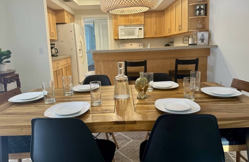 Outside, you’ll discover a private outdoor dining and a lanai area to enjoy the great outdoors that invites you to relax and unwind. Take a dip in the sparkling community pool, bask in the sunshine on the expansive patio, or enjoy alfresco dining under the covered lanai. This is a pet-friendly property and small dogs are permitted with property manager approval and $20 per night fee. Six nights or more $125 fee. Please notify us prior to arrival if you are bringing your dog.