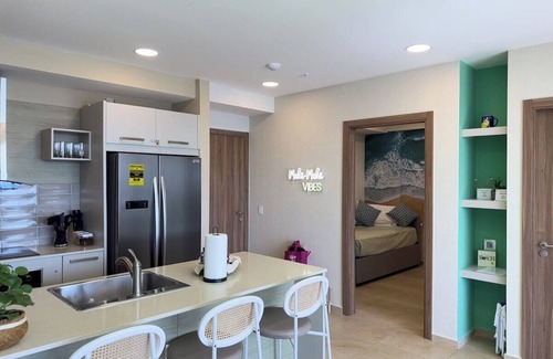 Welcome to your luxury beachfront oasis in Nueva Gorgona! Elevate your vacation experience to new heights in our exclusively designed apartment, located on the 18th floor of an elegant building with stunning views of the Panamanian Pacific. Inspired by the beauty of the mahi mahi fish, our space captivates with its vibrant and modern style, creating a unique and welcoming atmosphere for your perfect getaway.