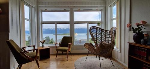 This property offers access to a patio, free private parking, and free Wifi. Outdoor seating is also available at Main floor in the Lyngen Alps, whole house rentable. Providing a terrace and sea views, the apartment includes 1 bedroom, a living room, TV, an equipped kitchen, and 1 bathroom with a shower. Towels and bed linen are featured in the apartment. There's also a seating area and a fireplace. Guests at the apartment can enjoy skiing and hiking nearby, or make the most of the garden. Sorkjosen Airport is 35 miles away.