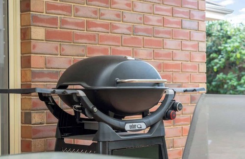 Outside, the private backyard patio is set up for relaxed outdoor dining with a six-seater table and BBQ facilities—perfect for sunny afternoons or warm evenings under the stars.