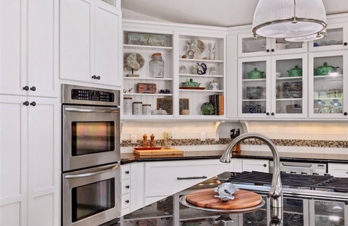 Going through from living room into open plan kitchen no expense has been spared here. Beautiful cabinetry, granite countertops, french door refrigerator, double ovens, under counter microwave and large gas range.
