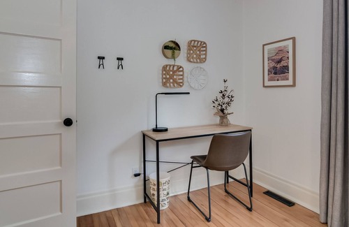 Located on a quiet street adjacent to Perry Memorial Park, Martingale Cottage is located within a five minute drive of Downtown Aiken, Bruce’s Field and Highfields Event Center. Beautifully decorated with contemporary furnishings, the home offers two bedrooms accommodating up to four guests. The home includes an open living room with dedicated dining space and a fully-equipped kitchen featuring a coffee and tea bar and washer/dryer available for use during your stay.