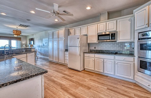 This beach house has a layout that is not only functional and very convenient, it accommodates large groups comfortably. All the bedrooms are a nice size with a bathroom in 6 of 8 bedrooms. There are six bedrooms upstairs and two downstairs. It sleeps 20 comfy/cozy if you include the 2 sofabeds in living room. The fully stocked kitchen has plenty of counter space and 2 refrigerators, 2 ovens, 2 dishwashers. There is a washer & dryer downstairs and washer & dryer upstairs also. This duplex is centrally located in Surfside Beach minutes from all activities that make MB so much fun. A great place for family reunions, golf groups, weddings, etc.! Professionally decorated.