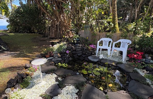 *Note- the owner lives in a one-bedroom under the property with her two small adorable dogs Zoey and Lilly. Your space is completely separate and has an outside set of stairs up to your private deck and 2 bedroom 1 bath area. Your Privacy is ensured throughout your stay. I would love to recommend restaurants and places to go and see. This is an adult-only property. There is no kitchen- it is an efficiency style- perfect for those who want to experience all the delicious Hawaiian cuisine our island has to offer, with the ability to grill, warm up leftovers, and have coffee and cocktails on your lanai.