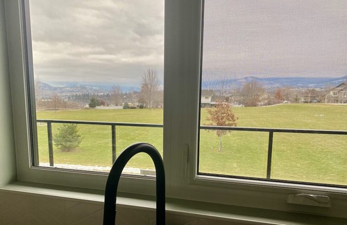 Take it easy at this unique and tranquil getaway. Brand New Home. 1000 sq. ft, 1 bedroom, 1 bathroom, in suite laundry. 50" tv in living room, small tv in bedroom, Large partly covered deck. Unique main floor LEGAL suite for easy in/out access. 5 minutes to downtown Vernon, Rail Trail & Beach.