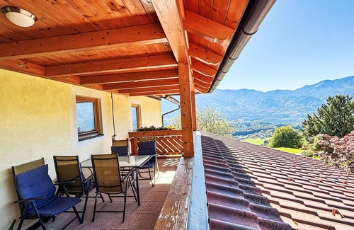 "Mittagskogel", 3-room apartment 80 m2 on 1st floor. Practical and cosy furnishings: living/dining room with dining table and digital TV. Exit to the balcony. 2 double bedrooms. Open kitchen (oven, dishwasher, 4 ceramic glass hob hotplates, toaster, kettle, freezer, electric coffee machine). Bath/shower, sep. WC. Wood heating. Parquet floors. Large balcony 18 m2, west facing position. Balcony furniture. View of the mountains. Facilities: washing machine. Internet (WiFi). Please note: non-smokers only.