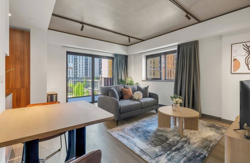 Stay in the heart of Wembley Park in this stylish, pet-friendly apartment with scenic balcony views. Designed in a sleek monochrome palette, it offers a calm and modern vibe with tech-ready features like Wi-Fi and widescreen TVs. Lavish shared amenities include rooftop access and a gym, available for a small fee. It’s a perfect blend of urban comfort and contemporary design—ideal for long stays in one of London’s most exciting areas.