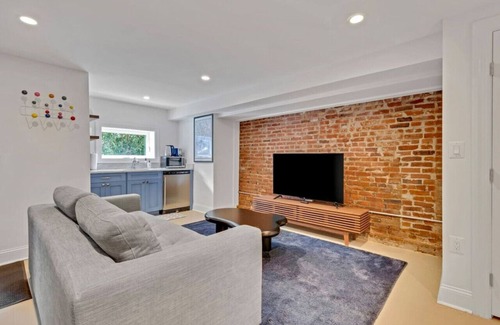 Discover DC in our newly renovated 1BR Guest suite, perfect for 2, plus a sleeper sofa for 2 more! It boasts 1 bath, a well-equipped kitchenette (no stove/oven but includes coffee/tea maker, fridge, microwave), and a cozy patio with a grill. You'll enjoy added conveniences like a washer/dryer and daily essentials. Located within walking distance to the convention center, with easy bikeshare and public transport access, it's your perfect gateway to explore the vibrant heart of Washington, DC!