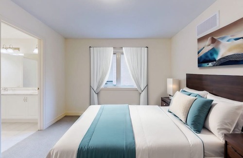 Welcoming you to our recently built, premium property that exemplifies suburban sophistication in the heart of Northwest Brampton. This 4-bedroom luxury haven is crafted to be your home base for exploration and relaxation. Each bedroom is a testament to comfort, with premium mattresses, fine linens, and a décor that's both chic and soothing. Each of the four bathrooms echoes a spa's serenity, offering a mix of showers and deep soaking tubs to unwind after a day of sightseeing or meetings.