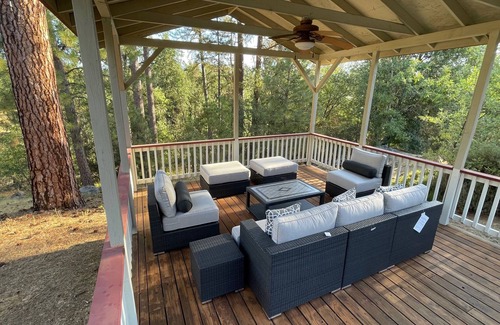 This ranch style house is the perfect nature retreat. Located near CA-49, 12 miles from Bass Lake and approximately 19 miles from Yosemite South Gate. Surrounded by 5 acres of wildlife and trees, there is plenty to explore on this private property. Experience real quiet and peace with the beautiful Mountain views from every part of this house. The home itself is fully stocked with premium products and amenities for any of your needs.