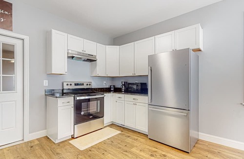 Inside, comfortable living quarters are shrouded in sunlight. The spacious living room lends itself to pleasant movie viewings with its oversized sofa and smart TV. The well-equipped kitchen makes cooking a breeze with its granite countertops, stainless steel appliances, and other nifty gadgets like a microwave and coffee maker. When it's time to eat, the in-kitchen dining table presents the perfect spot to enjoy family-style meals.