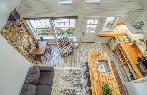 Sitting less than a mile down a well-maintained gravel road, the Landing House is tucked neatly into the side of the Ozark Mountains. The home itself boasts an inviting atmosphere both indoors & out with beautiful landscaping and cozy spaces to chill! The house itself sports 2 bedrooms & 2 full bathrooms with accommodations to sleep up to 9. Large windows in the Living Room/Kitchen allow the natural beauty of Arkansas to stream in of a morning and let's you take in the serenity of the evening sunsets at dusk. Outside you will enjoy wandering the grounds taking in all the local flora & fauna. Below the Landing House is a leveled sitting area complete with horseshoe pits, a fire pit, and plenty of chairs for relaxing. Nearby the fire pit is the Studio with access to a covered wood deck. This deck space generally has a gentle breeze pulling through and provides an ideal location to wait out a rainstorm as you listen to the pitter-patter of the rain on the metal roof and feel time itself slow down just a bit...