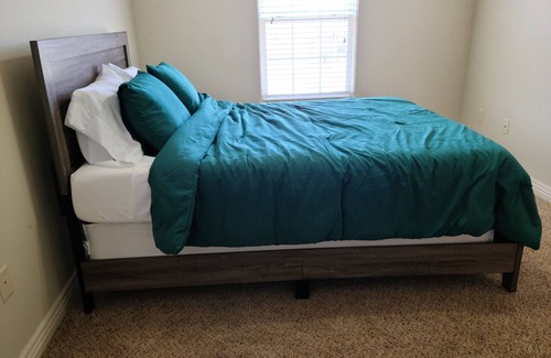 Modern home in Lowell, AR. Sleeps 6, has huge master bedroom with walk in shower, and jetted whirlpool tub with a king mattress that feels like cloud 9. 2nd bedroom has a queen size bed and 3rd bedroom has 2 twin size bed for the kiddos. Cozy living room with wifi and cable TV.