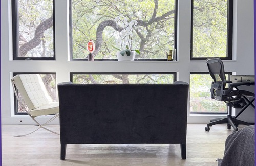Welcome to your contemporary South Austin escape, thoughtfully designed by the award-winning Dick Clark + Associates and lovingly curated by Desirae and her mother, Cynthia. Nestled beneath a canopy of live oaks in the sought-after Bouldin Creek neighborhood, this architecturally striking property offers two distinct spaces perfect for solo travelers, couples, and business guests seeking style and serenity.