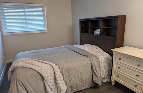 2 Bedroom House with Air Conditioner, Bedding and Kitchen