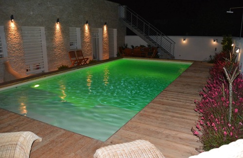 Private and modern Mediterranean summer villa, located in the best area to explore most famous Apulia's sites. A gorgeous pool, a panoramic sea-view and a charming rock garden, with a 200 year old mulberry tree, makes Villa Isabella a wonderful retreat from the stress of daily life. Cool and contemporary, it is packed with comforts: three en-suite double rooms, air conditioning, cleaning service, Wi-fi, TV, Security services, three outdoor eating areas - two at ground level and one at roof level - with barbeque and a ventilated sun deck where relax and watch stars. The villa can comfortably host a family or three couples due to its well-planned layout that preserves privacy and freedom for each double room. The villa embodies dynamic spaces for continuous enjoyment; choices are made between a luxury sunlight garden, a sheltered patio, or the quiet and cool interiors. During your day you can choose to enjoy the sunny and seductive pool, where you can easily bring out breakfast and lunch from the adjoining fully equipped kitchen; or you may decide to spend your day at the roof terrace, overlooking the surrounding countryside and the sparkling blue sea. Mediterranean herbs and cactus planted at the roof garden will immerse you in the energizing and rich atmosphere of summer. Interiors of Villa Isabella are designed and decorated with the aim of maximizing the light of Puglia and to provide you with comforts. Local Puglia's stones used for the outside areas and Tuscan handmade “cotto” tiles placed at the interiors, merge seamlessly with contemporary lines and rustic-chic elements, striking the perfect balance between modern comfort and ageless charm. The main entrance leads into a white, open concept living and dining area, with a sofa and a fully-equipped kitchen with a dining table. Two bedrooms lead off from the dining area have their own communication with the outdoor and swimming pool areas. All doors and windows have wrought iron grills and mesh screening to allow windows to be left open but keep insects out. Villa Isabella lies 100 meters from the coast and 5 minute drive, or 15 minute walk, from the charming fishing village of Torre a Mare. The location of villa Isabella and its high quality of spaces offers you chances not only to relax but also to plan one day trips to gorgeous UNESCO places, like Alberobello and Matera, or outstanding natural areas as the Torre Guaceto natural reserve and Polignano a Mare.