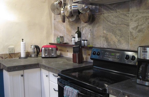 The adjoining living/dining area is a comfortable place to relax, watch videos, or just enjoy some peace, quiet and views of rocky outcrops. Our smart TV works with your private stream accounts such as Hulu, Netflix, Prime, Disney, etc.