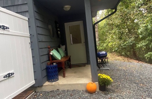 Enjoy a stay at one of the few mountain top homes in the Uwharrie National Forest! This delightful cabin is a secluded retreat for guests, resting within the forest boundary with hiking and gorgeous views right from the front door. With 2 bedrooms featuring a king bed and a bunk bed, along with a half bath, and a hot/cold outdoor shower this cabin is fully equipped for a comfortable stay. A kitchenette and eating area contains a microwave, fridge/freezer, toaster oven and coffee bar. The cabin is approximately 1 mile from the National Recreation Trailhead, about 4 miles from the OHV and horse trails, and about 2 miles from multiple kayak access points along the Uwharrie River and Tillery and Badin Lakes. This peaceful property is 29 minutes or less from the NC Zoo, Starworks, and Seagrove's Pottery Row. The cabin is equipped with toiletries, hair dryer, and linens. Enjoy the glamping life with the convenience of WiFi, AC and a restaurant less than 1 mile away!