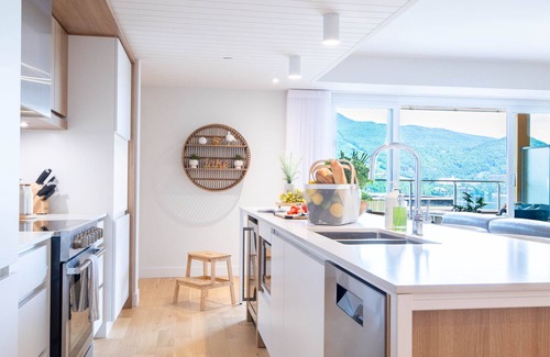 Less than 5 minutes from the tourist village and the ski slopes, this apartment is part of the Lago Tremblant complex. Its modern Scandinavian style architecture will seduce you.