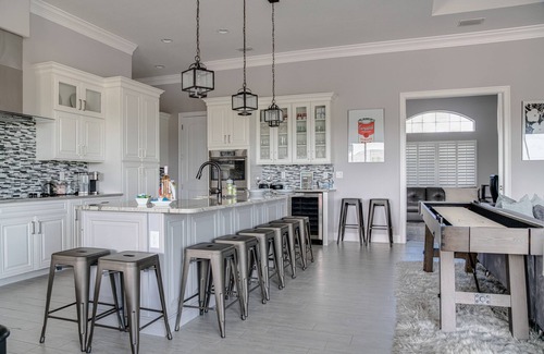 The pool area is where family and friends will enjoy unbelievable moments and create great memories. Stepping out to the lanai, a lovely heated pool will invite you to relax every day. The outdoor kitchen is spacious and perfect to have lunch or grill meat on the barbecue grill. Enjoy a glass of wine next to the pool, watching the sunset, while sitting on the outdoor sofa or deckchairs.