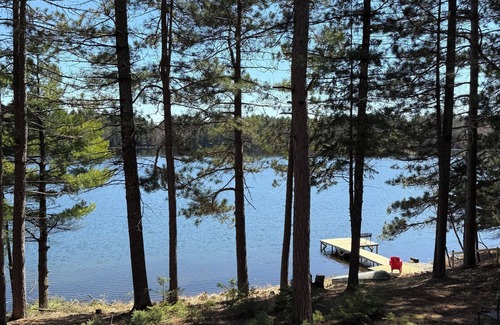 Located just 9 miles south of the nostalgic town of Minocqua and mere minutes from the scenic Bear Skin Trail in Hazelhurst, The Lake View is on a quiet, rural town road that serves as an approved route for both snowmobiles and ATVs. Surrounded by towering pines and dappled forest light, the home blends rustic simplicity with thoughtful updates. Step inside to discover two inviting bedrooms: the master, with its generous king bed, vintage-style dresser, and soft morning light filtering through two windows; and a second bedroom offering a restful queen bed, walk-in closet, and charming touches of cottage comfort. A quaint, single bath with a shower and vanity offers everything you need, including lots of hooks, storage drawers and hand soap. The refreshed kitchen captures a farmhouse feel with a deep sink, open shelving, a kitchen island, and all the essentials for preparing a hearty meal or lakeside snack. Gather around the kitchen island or the square farmhouse table in the adjoining dining area, complete with a picture window that frames the peaceful woodlands behind the house. A small writing nook, with a simple desk and cabinet filled with board games and books, adds a nostalgic touch. The adjacent sunroom invites quiet reflection, furnished with a full-size bed and a cushioned reading chair beside windows that frame the lake and trees. Close the rustic sliding barn door for a moment of privacy and let time slow down. The living room is welcoming, with a mix of classic comfort – a three-cushion sofa, rocker recliner, chaise lounge, and glider rocker. Gaze out through the sliding glass patio doors or one of two large windows, offering tranquil lake views. Step out onto the covered deck to enjoy your morning coffee, an evening drink, or the colors of a Northwoods sunset, rain or shine. Outdoors, the charm continues: a classic picnic table, charcoal grill, and lakeside fire pit with complimentary firewood await your stories and s’mores. The shoreline remains natural and untouched, perfect for wading into the clean, swimmable waters. A private pier, rowboat, paddle boat, paddle board and kayak are included for fishing adventures – with plenty of bass, panfish, perch, and northern pike to be found in these quiet waters. There is a swim raft to use. With no public lake access and a no-wake policy, Silver Lake is a sanctuary of calm, dotted with private family homes and cabins along its gentle shores. There will be plenty of opportunities to see wildlife at MY T Pine Acres. Deer are frequently passing through our property, bald eagles are often seen flying overhead and loons and ducks are often seen on the water. You may even see turkeys! Though vintage in spirit, The Lake View is simple, clean, and comfortably appointed – an ideal place for families to make lasting memories. While it is one of three rentals on our property (along with the owner’s residence), it has its own private entrance and lakeside area, offering seclusion and space to breathe. We are licensed with a Short Term Tourist Rooming House permit through Oneida County and hold a Seller’s Permit with the State of Wisconsin. Inquire about pets – and don’t forget to follow us on Facebook for updates and more glimpses of lake life at MY T Pine Acres.