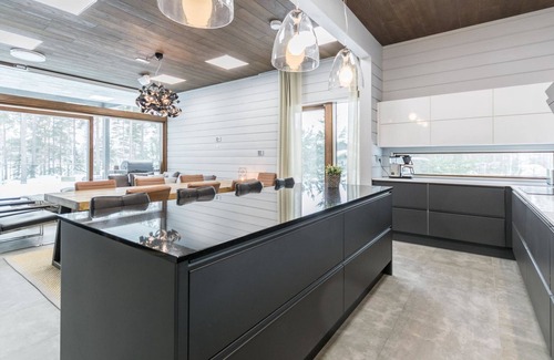 The villa is spacious and suitable for hosting events. The tableware accommodates up to 15 people, and the kitchen is equipped with two large thermos coffee makers and a spacious refrigerator. If you need more accommodation, the owner also offers stylish Naava Chalet apartments with saunas within 300 meters, apartments 101, 102, 103, 104, and 105 (Lomarengas destination IDs: 16960 - 16964).