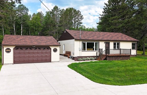 Step into Bucky's Haven and discover a charming retreat perfect for your next getaway. This idyllic home comfortably accommodates up to six guests in two cozy queen-size bedrooms and an additional bedroom with a bunk bed. The bunk bed is a full size on bottom and twin on top. Spend quality time with loved ones in the inviting living room, or prepare a delicious meal in the newly renovated kitchen, complete with all the essentials. Behind this home you will find a woodland setting. It's not uncommon to catch a glimpse of graceful deer meandering through the property, including a special visitor named Bucky. Make sure to browse our gallery to see a charming photo of this beautiful creature who has become a beloved resident of the area. As you make your way through the home, the breezeway invites you to relax and unwind while taking in the scenic views, accompanied by your favorite beverage. Outside, a large yard beckons, boasting a patio ideal for a family bbq on the gas grill. Gather around the fire pit for an unforgettable evening under the stars. For entertainment, head to the basement where you'll find a pool table, darts, and exercise equipment to keep both your mind and body active. Retreat to the office/kids room to explore a collection of board games and books for unforgettable moments. Throughout your stay, enjoy the convenience of ample parking in the spacious driveway and garage. Nestled in the heart of Hermantown, Minnesota, Bucky's Haven offers easy access to a variety of exciting attractions and activities. From the Miller Hill Mall, perfect for a day of shopping, to the Hermantown Hockey Arena for some thrilling ice hockey action, there's something for everyone. Don't miss the awe-inspiring air show, a must-see event that's sure to leave you breathless. Explore the nearby Lakes 10 Cinema for a cinematic adventure, or delve into the divine offerings at Divine Intentions Hermantown. For outdoor enthusiasts, the Rose Road Field awaits with picturesque trails and scenic views. Visit the DECC Convention Center for a diverse range of events, including dog shows, paranormal shows, craft shows, and more! During the holiday season, Bentleyville's Tour of Lights is a magical experience not to be missed. And for those seeking natural wonders, Congdon Park and Canal Park offer breathtaking hiking opportunities.