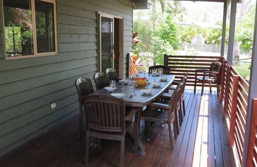 This comfortable island home is nestled right on the edge of the lush green woodlands that cover much of Magnetic Island. Nelly Bay Beach is just 500m walk with shops and restaurants nearby.