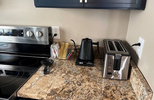 -fully loaded kitchen!!! Including: double Belgian waffle maker, toaster, blender, rice cooker, large crock pot, and everything you need to prepare meals for the whole family!