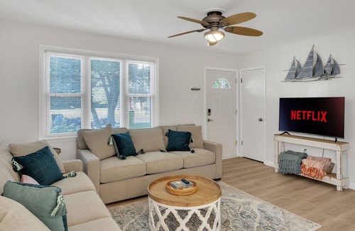 Open concept single level cottage with 3 bedrooms and 2 full bathrooms. Updated throughout with new floors, patio, and appliances flow nicely with stocked retro kitchen outfitted with refreshed original cabinets and countertop. Quality furnishings and touches throughout give a beach vibe for you and your family to kick back and relax!