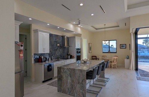 Southwest Floridian new home is equipped with all you need for a spectacular time while in SWFL. Watch the amazing sunsets over the water while you Kayak the canals and watch the manatees and dolphins or sitting relaxing on the lanai. Matlacha is around the corner It is 40mins to all airports. Sanibel & Ft. Myer Beaches are 30mins. You are 5 mins to shopping, golf & fishing. Saltwater heated pool, open concept with sliders to outside dining. 4 bedroom & 3 full baths. Fully equipped new kitchen to cook gourmet meals and outdoor grilling.