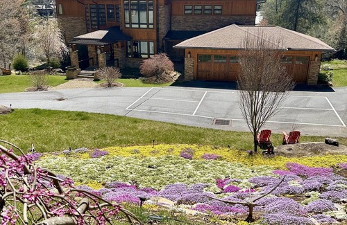 Spectacular mid century modern mountain home overlooking the main waterfall on beautiful Lake Glenville between Cashiers, NC & Cullowhee, NC. Perfect for families or other groups. The perfect combination of relaxation and fun await you as you listen to the sounds of the waterfall, watch the hummingbirds swoop by, swim in the lake or enjoy watching boaters, water-skiers, or kayakers from the dock or one of the porches. The house is 8000 air-conditioned sq. ft. with an additional 3000 sq. feet of covered and uncovered deck. WiFi, Internet, Roku enabled TVs. Property has been landscaped with multiple stunning flower gardens. A whole house Generator automatically comes on if needed for safety and security 24/7.