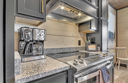 The chef of your group will feel right at home in the large kitchen. This modern room features stainless steel appliances, sleek granite countertops, and all the basics you’ll need for whipping up meals for the whole group. There’s also a convenient coffee station and a large dining area with amazing views of the property's treetops.