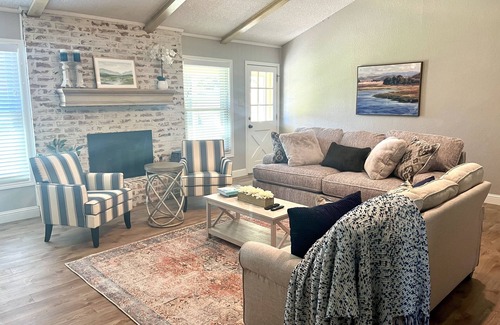 Bedrooms are spacious with comfortable and fresh linens. One room has a king bed, one has a queen bed, and one has a full-size bed. Luggage racks and USB connections are there for your convenience. The kitchen is large enough for hosting your family and enjoying either home-cooked meals or any of the wonderful take-out locations nearby. The backyard is large and has plenty of room for the kids to run around.