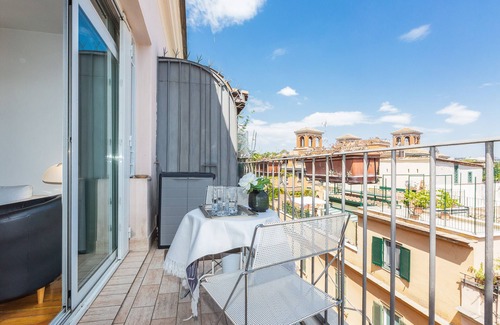 Cozy and Charming Attic with Terrace overlooking Villa Borghese. The apartment has been recentely renovated , it comes with 1 bedroom, 1 bathroom, a living area with a comfortable sofa double bed ,a flat-screen TV with cable channels, a dining area, a fully equipped kitchen, and a balcony with city views.