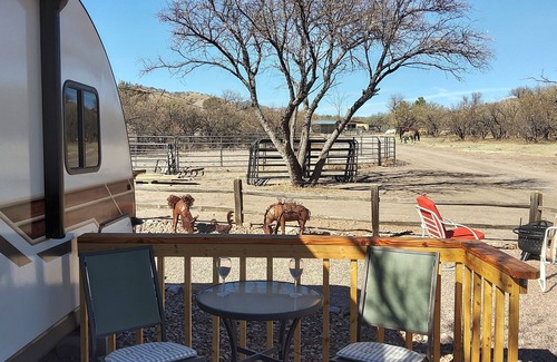 It is close to the Sonoita/Elgin wine region and the quaint town of Patagonia where birding, hiking, eclectic shops and restaurants await. You may want to day trip and explore Tombstone, Bisbee, Kratchner Caverns, or Parker Lake or Lake Patagonia as they are within a reasonable driving distance. But, do enjoy your morning Joe on the trailer's deck and kick back by the fire pit with your preferred libation under the stars at night. You may choose to stay close by during your stay since adjoining this vintage style cowboy/cowgirl decorated trailer and horse ranch is the Coronado National Forest for exploring. You can hike right out the back of the property. Donna and Howard can show you the way. You may even spot some deer or a variety of birds as this area is also an excellent location for birdwatching. This rural setting is a delight for the eyes.