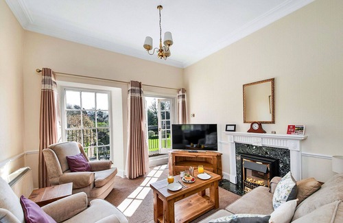 The Roulston Hall Apt is a 2-room apartment spanning 150 m2, situated on the ground floor. This property can comfortably accommodate up to 4 adults. The living room features a sofabed, a pull-out bed, and an open-hearth fireplace, creating a cozy ambiance. Additionally, there is one room equipped with a french bed. The apartment also includes a kitchen fully outfitted with an oven, toaster, kettle, microwave, and freezer.