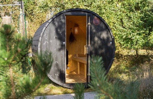 The idyllic natural grounds also invite you to relax. In addition, the beautiful sauna barrel offers you the opportunity to completely unwind in the outdoor area. Prepare a delicious barbecue in the evening and review the day in peace and quiet.