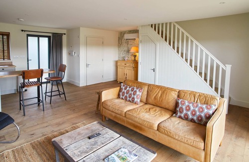 The open-plan living area is a haven for couples. Relax on the spacious sofa, unwind with the television, and stay connected with Wi-Fi after a day exploring Norfolk.