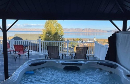 Relax with the whole family or have a fun weekend with friends in our peaceful spacious lake house in prime location. Take in the stunning lake views from the spacious deck in the brand new hot tub, relax on the porch, enjoy alfresco dining with the outdoor picnic table and BBQ, or have a movie night in the theatre room downstairs. The deck will become your new oasis watching sunrises or sunsets and enjoying the beautiful outdoors at Bear Lake.