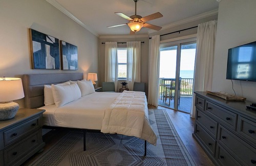 You'll begin and end your perfect Palm Coast days in this condo's luxurious bedrooms. The expansive master suite showcases a king bed with an adjoining bathroom boasting a garden tub, double vanities and a walk-in shower. The second bedroom, perfect for kids, features two full beds. A third bedroom houses a queen-size bed with a bathroom just down the hall. All three bedrooms half flat screen TVs so everyone can drift off or wake up to their favorite show or movie.
