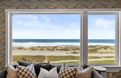 Enjoy vibrant sunsets and ocean views from our unique, top-floor, 2BR apartment in Ocean Beach, San Francisco. This beautifully designed space includes a king master, ocean-view bedroom, sunlit bathroom, cozy living room with smart TV, and high-speed WiFi. Family & pet-friendly apt with an ocean-view desk, it’s perfect for remote work. With the Great Hwy closed to cars, enjoy peaceful walks or bike rides. Ideally located—steps from the beach, SF Zoo, transit, cafes, and parks.