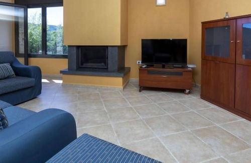 10-room house 800 m2 on 3 levels. Practical and comfortable furnishings: entrance hall. 1 room with 2 beds (90 cm, length 190 cm), bath/WC. Exit to the terrace. 1 room with 1 bed (160 cm, length 190 cm), shower/WC. Exit to the terrace. 1 room with 1 bed (90 cm, length 190 cm), 1 french bed (150 cm, length 190 cm), shower/WC. Exit to the terrace. 1 room with 1 bed (135 cm, length 190 cm), shower/WC. Exit to the terrace. 1 room with 1 bed (135 cm, length 190 cm). On the lower ground floor: living/dining room with satellite TV. Exit to the terrace, to the swimming pool. Living/dining room with open-hearth fireplace and satellite TV. Exit to the terrace, to the swimming pool. 1 room with 1 bed (150 cm, length 190 cm). Kitchen (oven, dishwasher, toaster, kettle, microwave, freezer). 2 sep. WC's. Upper floor: 1 room with 1 bed (150 cm, length 190 cm). Exit to the terrace. 1 room with 1 bed (135 cm, length 190 cm). Exit to the terrace. 1 room with 1 bed (135 cm, length 190 cm). Exit to the terrace. 2 showers/WC. 2 terraces, patio. Terrace furniture, barbecue, deck chairs, box-room. View of the mountains. Facilities: iron. Internet (WiFi, free). Garage (4 cars). Please note: non-smoking house. Upper floor: room with a sofa. 2nd kitchen with oven, dishwasher, microwave and small table. Laundry with 2 washing machines and 1 dryer. The 2 houses are connected internally. HUTG-000208