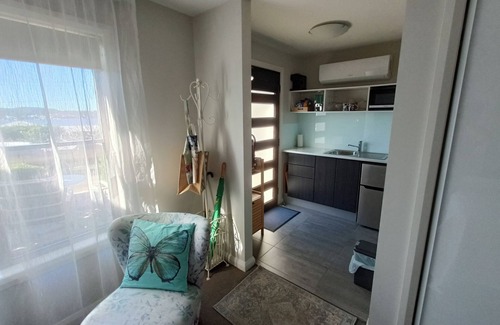 Your self-contained, fully furnished private studio can accommodate 2 guests on the ground floor of our residence, with separate front access. The studio has a bed/living area, kitchenette and separate bathroom. You won't have to share any spaces. Car parking for 1 car is available at your front door on the property.