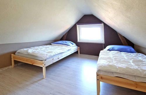 Built in 2015, the approx. 70 m² non-smoking house for up to 4 people is spread over two floors. On the first floor there is a large living room (sofa bed - extra bed, fireplace incl. firewood, flat screen TV, dining counter) with open kitchen (electric stove, oven, dishwasher, refrigerator, various small kitchen appliances) and the modern bathroom with shower, toilet and towel warmer (electric heating). The sleeping facilities (1 room with 2 single beds, 1 open area with 1 bed, 1.40 m wide) are accessible via an open staircase. ATTENTION: low ceiling height of approx. 1.70 m!