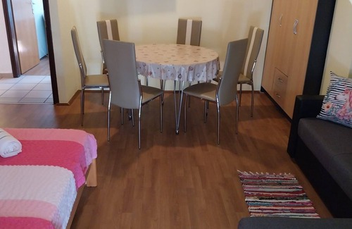 Apartment can accommodate 6 guests. Beds are situated in 1 sleeping rooms, but also in the living room, within 40m2. Guests can use a private terrace to enjoy the warm summer evenings.