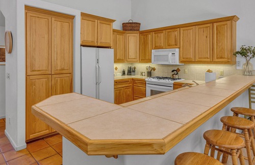 Step outside onto the sunny deck, complete with comfortable seating and a brand-new BBQ grill for outdoor dining. Soak under the stars in the private hot tub, or take advantage of the home’s bikes and jogging stroller to explore Sunriver’s scenic trails.