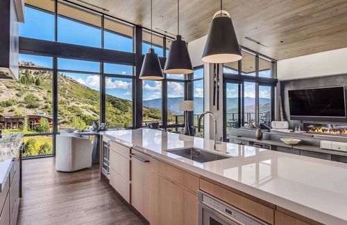 This top floor penthouse features a great room with stunning window walls, steel-clad gas fireplace, hardwood flooring and state-of-the-art audio-visual system, as well as the chef’s kitchen outfitted with a cascading island, European Gaggenau gas range/appliances and wine refrigerator. Additional comforts include a twin-over-king bunk bed in the third bedroom, spa-like bathrooms with upgraded fixtures, steam shower and/or soaker tub, a washer/dryer, private ski locker, and underground parking.