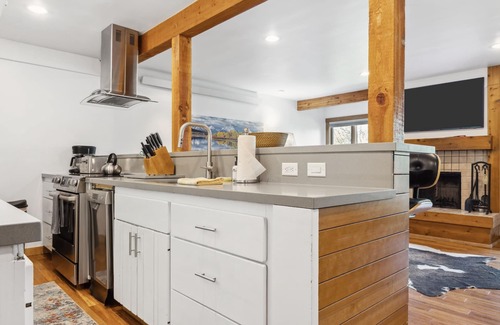 This contemporary one-bedroom, 752 square-foot condo is tucked away in the charming Westbank area, conveniently located between the town of Jackson and Teton Village. Enjoy the peace and quiet of being nestled against a forest and nearby stream, while also being within walking distance of restaurants and shops. Whether you choose to lounge on the private patio or curl up by the fireplace, Raspberry 3712 is the perfect retreat for your Jackson Hole vacation.