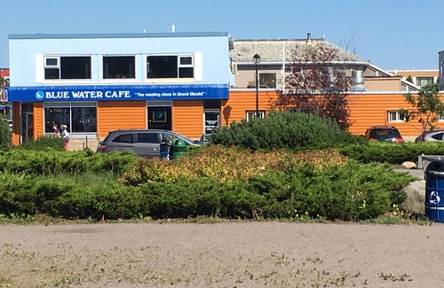 Located in downtown Grand Marais, Mn. the Blue Water Suite overlooks Lake Superior and the town of Grand Marais. It has easy and convenient access to all the night spots and our local shops and restaurants. Great sunrise and sunset views. Blue Water Suite is located 16 steps above the Blue Water Café, which is a long time favorite with area and local guests. Enjoy an eagle’s eye view of fireworks over the harbor on the 4th of July and easy access to the Arts Festival and Fisherman’s Picnic. Centrally located to enjoy all of the great things that Grand Marais and Cook County have to offer. We ask that there be no pets and No Smoking. Check-out time is 11 a.m. and check-in is 4 p.m. Enjoy over 900 square feet of space. Guests must be able to climb stairs.
